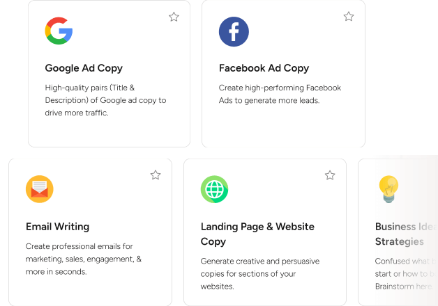 Nuestros casos de uso le ayudan a crear de manera rápida y sencilla contenido de alta eficiencia y fácil de usar para aplicaciones y redes sociales, guiones para videos, impulsar el SEO y generar arte digital, ¡todo a una fracción del costo y en un solo lugar!